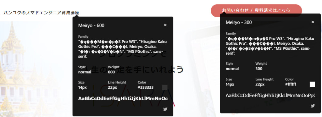 サイト上のフォントを調べることができます。複数同時に確認できるので使いやすい。