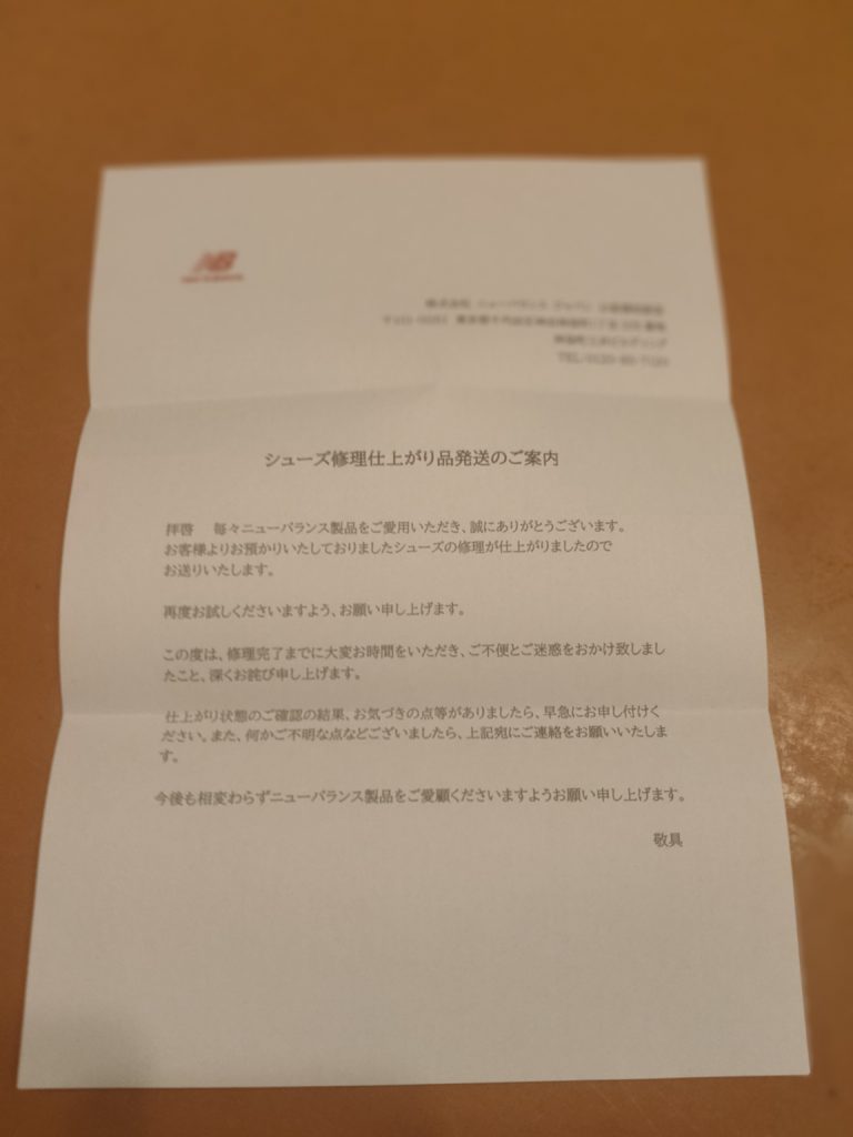 長年愛用しているM1400。ライニング破れの修理、ソール交換について、ニューバランスの公式リペアサービスにて修理したを依頼。依頼から5ヶ月。スニーカーが届きました。